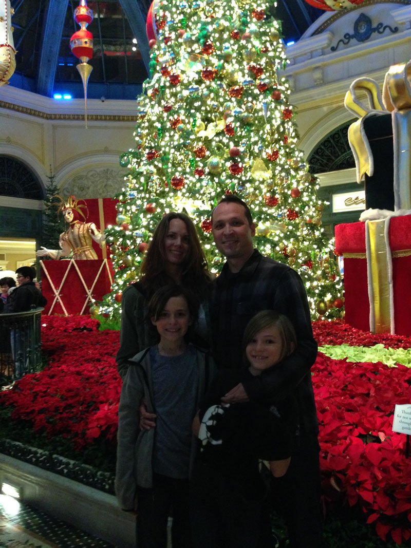 We did see a few Vegas things. We saw the water show and the Christmas display at the Bellagio and walked the strip at night, with all the kids. The Cosmopolitan had a real ice rink on the pool level! The boys got to see the strip from my mother’s room, high up, at The Flamingo, they thought that was pretty cool. We finished the Christmas shopping at one of the largest malls I have seen in a long time. Sprinkles cupcakes and frozen hot chocolate from Serendipity3 are off the bucket list. Yay! We went to Fremont Street to eat some incredible Thai food. We went to see a Cirque Du Soleil show; the kids were in awe, it was fantastic! Oh, we also won big at the casino, $14. We run this city!